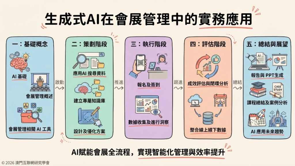 4. 全面能力提升:涵蓋會展策劃、執行、數據收集及成效評估,提供全方位的會展管理知識