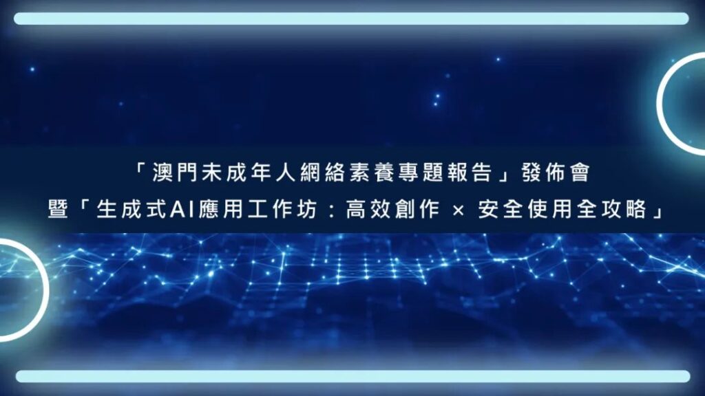 澳門互聯網研究學會將於2025年4月1日舉辦「澳門未成年人網絡素養專題報告」發佈會,同場舉辦「生成式AI應用工作坊:高效創作 × 安全使用全攻略」。