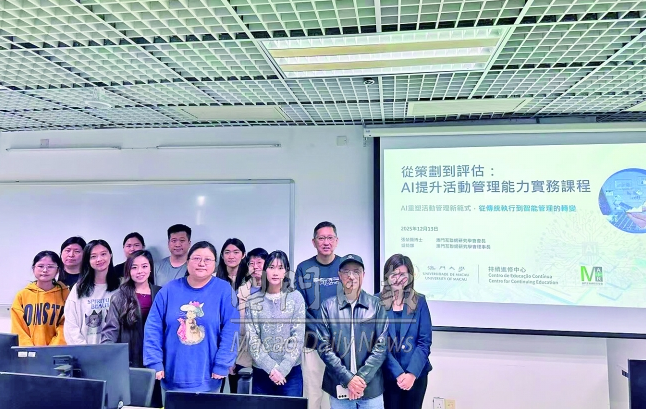 【本報消息】澳門大學訊:為配合澳門特別行政區政府“1+4”經濟適度多元發展策略,推動會展及社區活動的智能化轉型,澳門大學持續進修中心與澳門互聯網研究學會聯合舉辦“從策劃到評估:AI提升活動管理能力實務課程”,為澳門會展業界培育具備前沿AI應用能力的實戰人才。