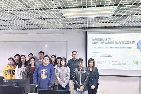 【特訊】為配合澳門特別行政區政府「1+4」經濟適度多元發展策略,推動會展及社區活動的智能化轉型,澳門大學持續進修中心與澳門互聯網研究學會聯合舉辦「從策劃到評估:AI提升活動管理能力實務課程」,為澳門業界培育具備前沿AI應用能力的實戰人才。